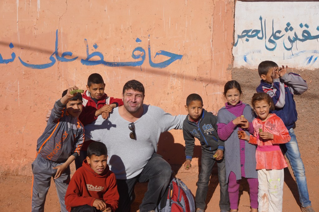 Atlas dağlarında Faslı çocuklarla