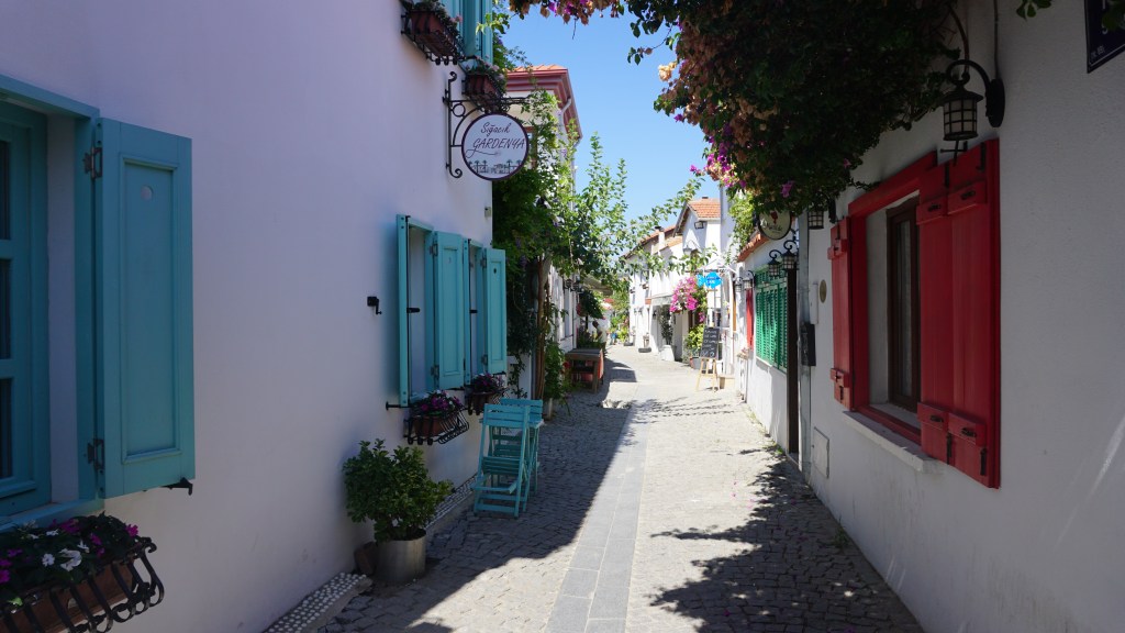 Korona morona derken aylardır evde kapalı kaldık. Ekmekler, turşular yapıldı. Netteki tüm popüler filmler izlendi. Kilolar alındı 🙂 Yasaklar kalkınca şirin küçük bir balıkçı barınağı ve modern bir marinası olan Teos’a, daha doğrusu yavaş şehir (Citta Slow) Sığacık’a gitmeye karar verdik. Sığacık’ta kale içinde kırmızı ve pembe begonvillerin gölgelediği şirin bir otelde yerimizi ayırttık.
