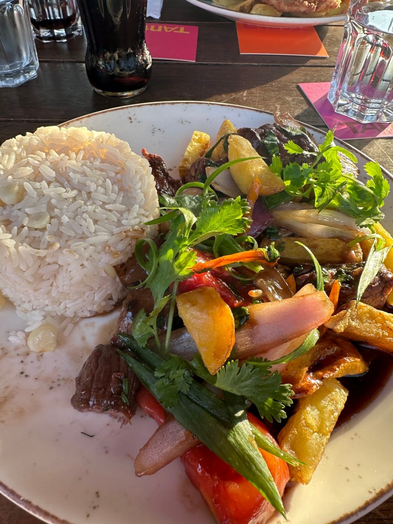 Lomo saltado; Sığır etine domates biber ve soğan eklenerek yapılır.