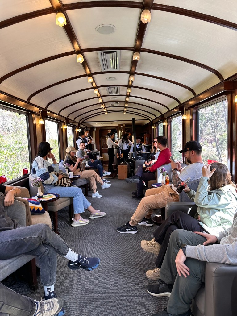 Cusco’dan Machu Picchu’ya gitmek için Poroy tren istasyonundan kalkan trenler var. Bu trenlerin bazıları vista dome denilen eşsiz vadileri ve dağları rahatça izlemenize olanak veren geniş pencereli trenler. Trenin yemekli vagonunda yerel müzikler çalan bir grup var. Yolculuk sırasında içecek ve atıştırmalık kutusu da ücretsiz olarak servis ediliyor. Yolculuk 3.5 saat kadar sürüyor.